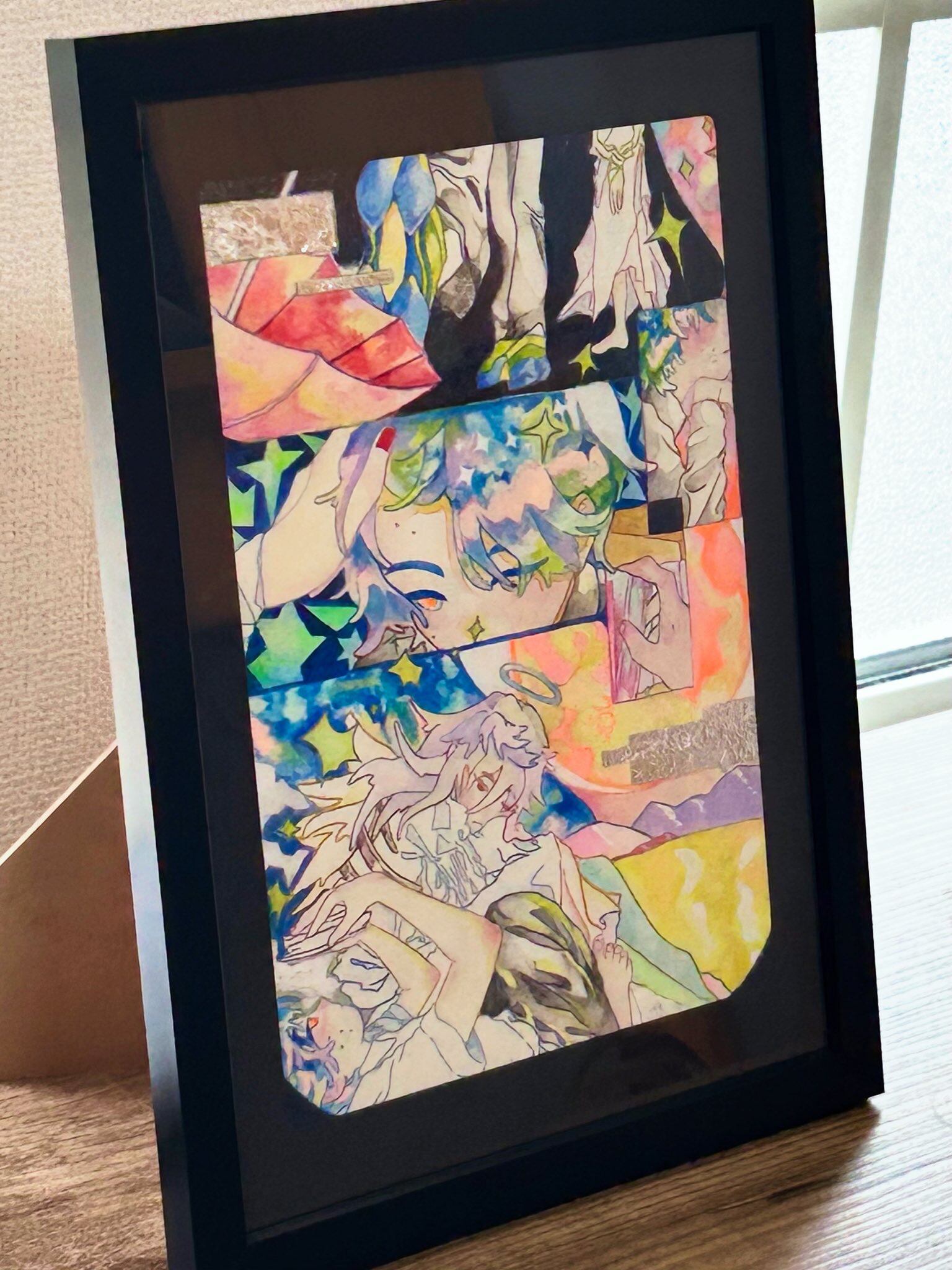 使用画材:アムステルダムアクリリックカラー、Ohuhu透明水彩絵具、色鉛筆、アルミホイル